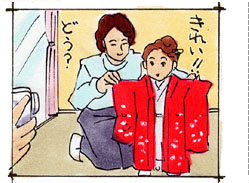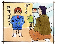 立ったままの大人の視点から撮影すると頭ばかりが見えてしまい、素敵なスーツや着物がよく見えません。 |