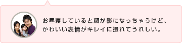 今回使っていただいたHDR-SR11は「顔キメ ビデオ」機能を搭載。被写体の顔を検出して、ピントを合わせます。さらに明るさや、肌の色も自動で調整してくれるので、赤ちゃんの顔をよりキレイな状態で撮影することができます。