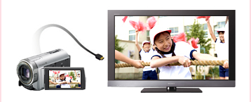 〈ブラビア〉のリモコンで“ハンディカム”を操作できる「リンクメニュー」に対応。対応〈ブラビア〉とつなげば、“ハンディカム”で撮った映像を〈ブラビア〉のリモコンひとつで見られます。 |