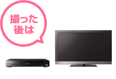 “ハンディカム”とブルーレイディスクレコーダーを、USBやi.LINKケーブルで接続して、カメラ取込みボタンを押すだけ。 撮影した映像を、ブルーレイディスクレコーダーのHDDに高速で取り込めます。 ブルーレイディスクレコーダーにUSB接続して、“ハンディカム”のワンタッチディスクボタンを押すだけで、撮影した映像をかんたんに直接ブルーレイディスクにダビングできます。