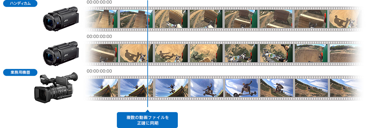 タイムコードの設定、ユーザービットの入力に対応。タイムコードを使用して複数の動画ファイルを正確に同期させるなど、よりスムーズな映像編集が可能になります。