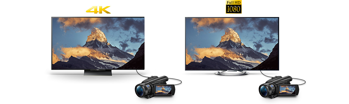 4Kで撮影した映像を4Kテレビで再生すれば、映像作品をかつてないほどの美しさでリアルに再現できます。また、フルHDテレビで再生しても、4Kの膨大な情報量をもとに変換するので、より高精細なフルハイビジョン映像を見ることができます。