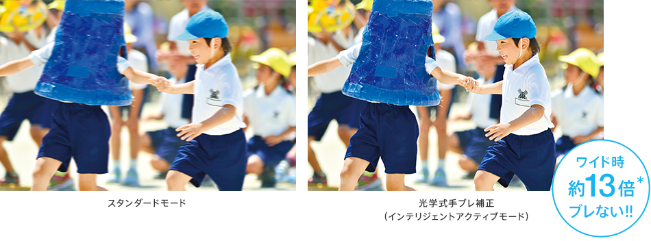 * 同機種の スタンダードモード時の手ブレ補正角度との比較。手ブレ補正効果は撮影条件により異なることがあります
