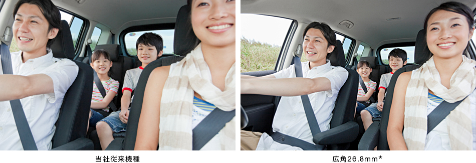 「Gレンズ」に加え、16:9の「Exmor R CMOSセンサー」を採用することで、ワイド端で、動画でも静止画でも26.8mm(*)というひろびろワイドな広角撮影を楽しめます。室内での大人数のパーティなど、後ろに下がれない場所での撮影や、建築物・風景の描写に大活躍。撮りたいもの全体をしっかりと画面の中に納められます。