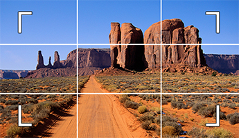 画面の中に、水平/垂直のライン合わせの目安になるグリッドラインが表示できます。建物や風景を撮影するときなどに便利です。