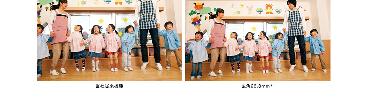 ZEISS バリオ テッサーレンズに加え、16:9の「Exmor R CMOSセンサー」を採用することで、ワイド端で、動画でも静止画でも26.8mm(*)を実現。狭い室内でも、広い範囲を撮影することができます。