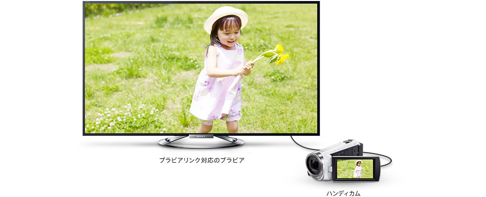 対応ブラビアとつなげば、ハンディカムで撮った映像をブラビアのリモコンひとつで見られます。