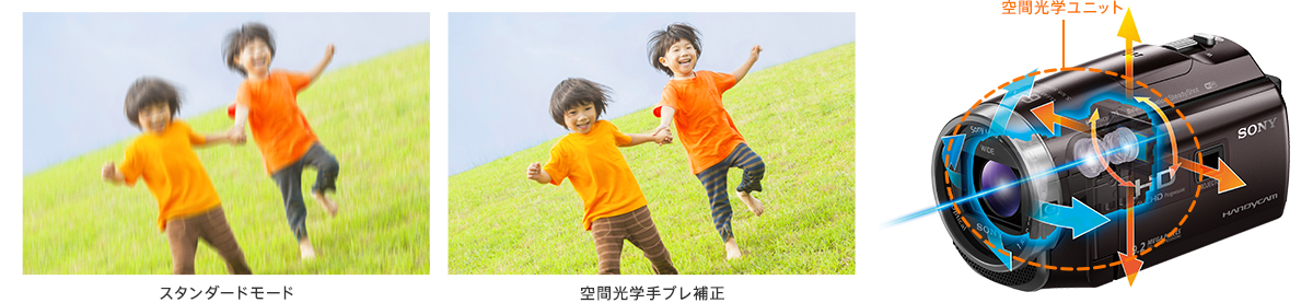 わが子の姿を、しっかり残しておきたい。でも、手持ちの撮影では、ブレて大失敗ということも…。そこで頼れるのが“新”「空間光学手ブレ補正」。こどもと一緒に動きながらの撮影でも、ブレをとことん抑えて、見やすく美しい映像が得られます。