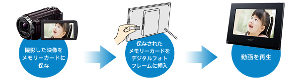 ハンディカムで撮影した動画や静止画をパーソナルコンテンツステーションにワイヤレスで保存・再生・共有ができます。