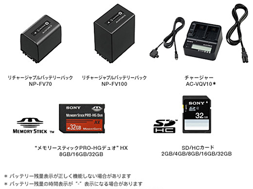 演奏会や演劇など長時間にわたって行われるイベントも大容量のメモリーカードを使用した連続撮影が行えます。また、高容量“インフォリチウム”Vバッテリーの採用により、同梱のNP-FV70なら約2時間以上、別売りのNP-FV100使用時には約5時間以上の連続撮影ができます。
