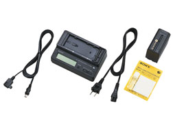 ●高容量リチャージャブルバッテリーパックNP-F960、急速充電と充電情報の表示が可能なACアダプター/チャージャーAC-VQ850を中心にした基本電源のキット