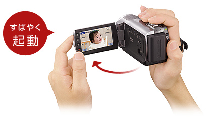 液晶パネルの開閉で電源ON/OFF。撮りたい瞬間に出会ったら、液晶パネルを開くだけ。すばやく撮影できます。