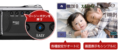 イージーボタンを押せば、撮影のさまざまな設定がオートに。設定を間違えることもなく、はじめての方でも手軽に撮れます。