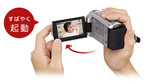 液晶パネルの開閉で電源ON/OFF。撮りたい瞬間に出会ったら、液晶パネルを開くだけ。すばやく撮影できます。