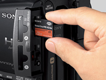 メモリーカードスロットを2つ搭載。2枚以上のメモリーカードを入れ替えながら連続収録するリレー記録が可能です。FX、FHモード時は、プログレッシブ記録も可能です。
