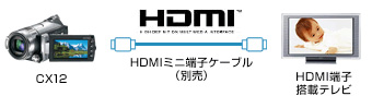 ハイビジョン撮影した映像は、ビデオ入力があればハイビジョン対応以外のテレビでも見られます(ただしスタンダード画質)。また、HDMIミニコネクターを搭載。HDMI対応のテレビとつなげば、ケーブル1本で映像も音声もデジタルのまま高画質で再生できます。