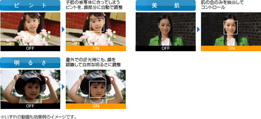動画撮影中の「顔検出機能」を搭載。
