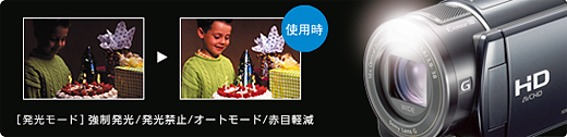 • * ソニーの超解像技術を用いて、ハイビジョン動画(150万画素:FHモード時 207万画素)から300万画素相当(2,304×1,296)の画質の写真を生成します。ただし、画質効果はシーンによって異なります