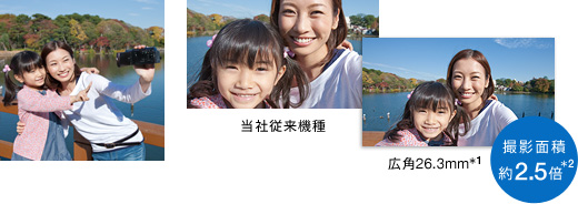 「Gレンズ」に加え、16:9の「“Exmor R” CMOSセンサー」を採用することで、ワイド端で、動画でも静止画でも26.3mm(*1)というひろびろワイドな広角撮影を楽しめます。室内での大人数のパーティなど、後ろに下がれない場所での撮影や、建築物・風景の描写に大活躍。撮りたいもの全体をしっかりと画面の中に納められます。