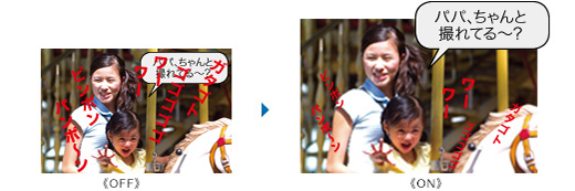 撮影中に顔認識と連動して、周りのノイズを低減し、くっきりとした音声を記録出来ます。