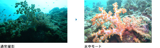 「おまかせオート」に防水モデルならではの水中モードを搭載。水中の光に適したホワイトバランス調整や色補正を行い、水中撮影時でも自然な色合いの写真を撮影できます。
