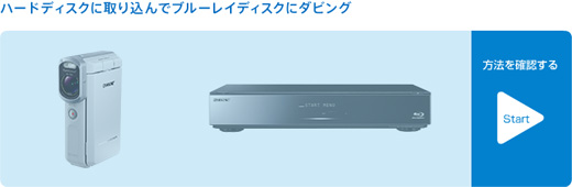 AVCHD対応(*)のブルーレイディスクレコーダーを使えば、フルハイビジョン画質のままブルーレイディスクに保存できます。パソコンがなくても、映像ライブラリーやプレゼント用のディスクを作成できます。