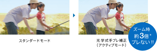 ズーム時の手ブレまでも補正するアクティブモードを採用。ブレがちだったズームアップでの撮影も、しっかり補正。わが子のアップも、ブレを抑えて鮮明な映像で残せます。