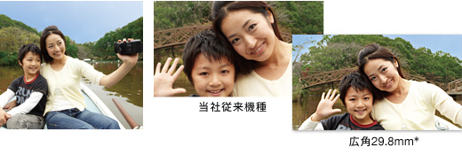 「Gレンズ」に加え、16:9の「“Exmor R” CMOSセンサー」を採用することで、ワイド端で、動画でも静止画でも29.8mm(*)というひろびろワイドな広角撮影を楽しめます。室内での大人数のパーティなど、後ろに下がれない場所での撮影や、建築物・風景の描写に大活躍。撮りたいもの全体をしっかりと画面の中に納められます。