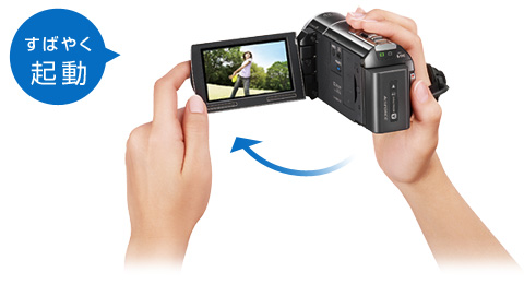 液晶パネルの開閉で電源ON/OFF。撮りたい瞬間に出会ったら、液晶パネルを開くだけ。すばやく撮影できます。