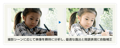 「BIONZ」には、撮影シーンに応じて最適な露出と階調表現に自動補正する、「Dレンジオプティマイザー機能」を搭載。目で見たときの印象に近い自然な映像を表現できます。