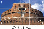 画面の中に、水平/垂直のライン合わせの目安になるガイドフレームが表示できます。建物や風景を撮影するときなどに便利です。
