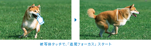 ペットや乗り物などフォーカスを合わせたい物にタッチすれば、その被写体にピントを合わせ続けます。人物以外の被写体を優先的にフォーカスし続けたいときに最適です。