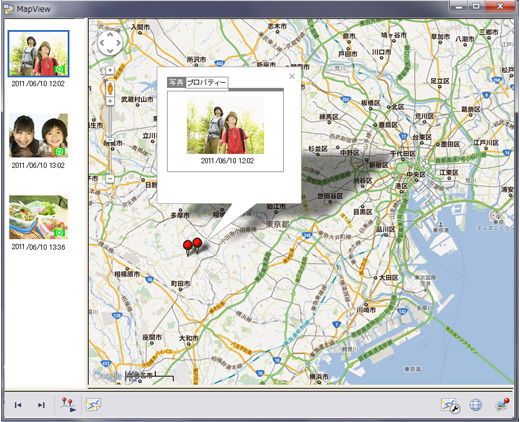 「GPS機能」対応“ハンディカム”で撮影した位置情報つき映像を地図上に表示できます。