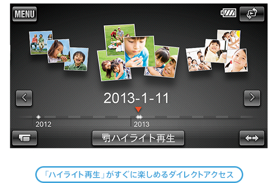 また、「GPS機能」対応モデルなら「マップビュー」にも対応。札幌、小樽など撮影場所ごとにまとめた映像が、かんたんに探せます。さらに、イベントごとの「ハイライト再生」も楽しめます。