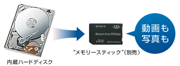 “メモリースティック”(別売)へのハイビジョン画質動画記録はもちろん、ハードディスクに記録した映像を本体内でダビングもできます。