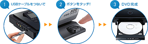 ●「ワンタッチディスクボタン」ひと押しでDVD作成