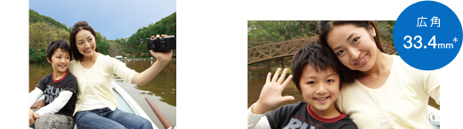 3D動画撮影時、広角33.4mm(*)という、ひろびろとしたワイド撮影が楽しめます。家族みんなが集まったシーンや、運動会や旅先の名所などで全景を撮りたいときに便利です。