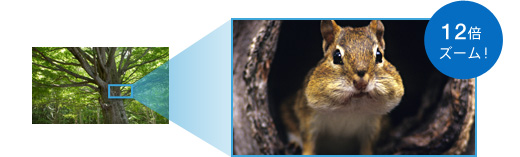 3D撮影時、10倍の光学ズームに加えて、フルハイビジョン記録で、12倍の高倍率で撮影ができる「エクステンデッドズーム」機能を搭載。より大きなアップを、美しくなめらかな映像で残せます。