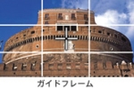画面の中に、中心が一目でわかるセンターマーカーを表示。さらに、水平/垂直のライン合わせの目安になるガイドフレームが表示できます。建物や風景を撮影するときなどに便利です。