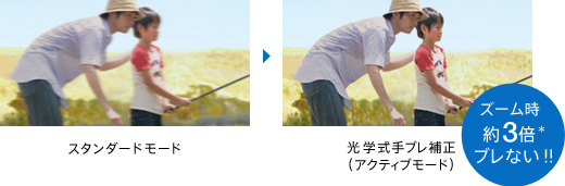 ズーム時の手ブレまでも補正するアクティブモードを採用。ブレがちだったズームアップでの撮影も、しっかり補正。わが子のアップも、ブレを抑えて鮮明な映像で残せます。