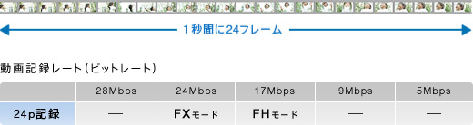 フィルム映画と同じ24フレーム/秒のフレームレートを採用した「24pネイティブ記録」に対応。まさにフィルムテイストの味わい深い映像が得られます。さらに、シネマトーン(シネマトーンガンマTM・シネマトーンカラーTM)にも対応します。