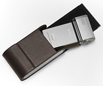 開閉部にマグネットを使用。ベルトループ付きなので、腰につけて持ち歩けます。また、“メモリースティック PRO デュオ”を収納できるポケットも付いています。