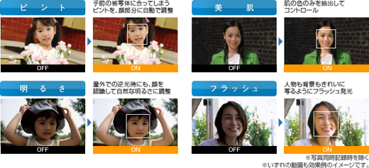 検出された顔部分の領域のビット配分を上げることにより、くっきりとした画質に自動で改善します。