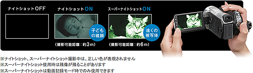 ナイトショット機能なら、赤外線を使って暗闇でも被写体を撮影できます。