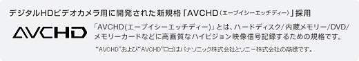 映像圧縮にAVCHD方式を採用し、24Mbpsという高ビットレートを実現。より細やかで高精細な映像が楽しめます。
