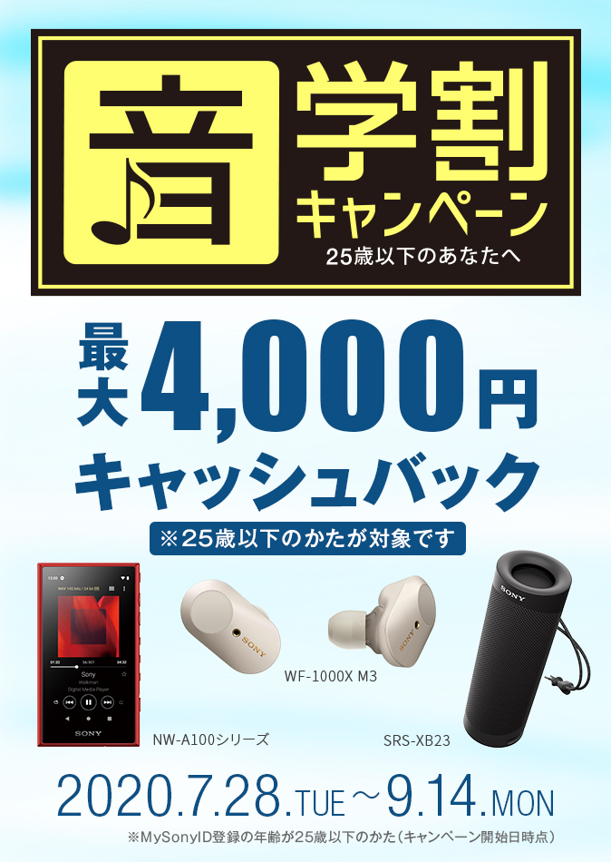 ●キャンペーン開始日時点(2020年7月28日)で25歳以下のかたが対象です。My Sony IDに生年月日を登録下さい。
