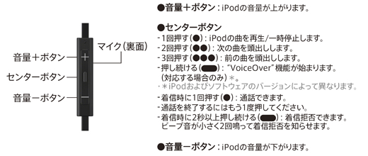 手元のリモコンで、iPodやiPhone、iPadの音量調節や再生操作やiPhoneでハンズフリー通話が可能です。また、ボイスメモに対応したiPodでボイスメモを録音できます。