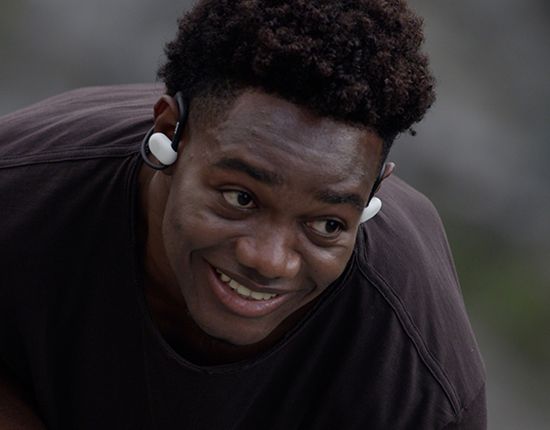 開放型(オープンイヤー)の中でも、耳の前にスピーカーが浮く「オフイヤー」デザインを採用しました。耳をふさがないため圧迫感がなく、汗をかいても蒸れにくいので、清潔な環境のままご使用いただけます。また、着地した衝撃や心臓の鼓動が耳に響いたり、バランス感覚が崩れたりすることなく、ランニングへの没頭を可能にします。