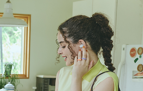 イヤホン本体へのタップのみではなく、耳周辺の顔をタップしても操作できます。イヤホン本体を狙ってタップする必要もなく、また本体をタップするよりも振動を最小限に抑えることができて快適に操作することができます。