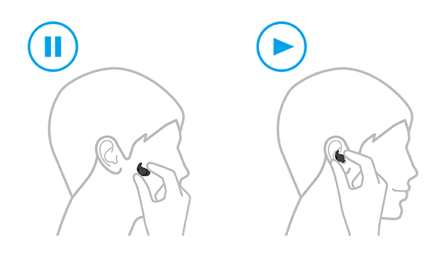 イヤホンを装着し音楽を再生している際に、イヤホンを一時的に外すと、自動で音楽が一時停止します。タッチセンサーも一時無効になり、誤作動を防ぎます。再度装着すると自動で音楽が再生します(*1)。また、イヤホンを外したまま約15分経過すると、自動で電源がOFFになり、バッテリーの消費を防げます(*2)。